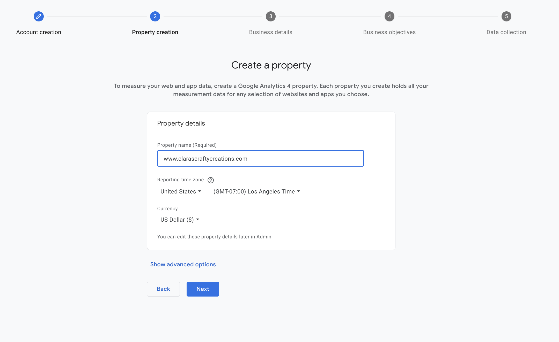 When creating a property, input your site's domain for clarity.
