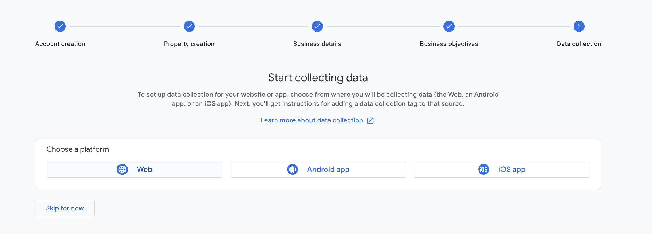 Provide Business Details and select "Generate Leads" for Business Objectives. For Data Collection, choose "Web".