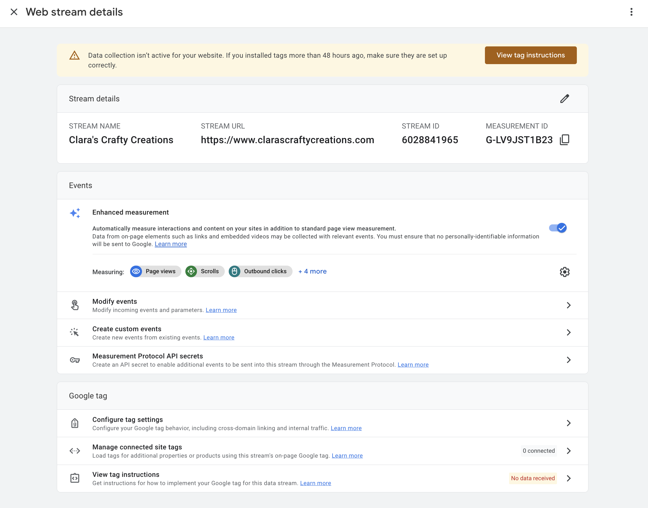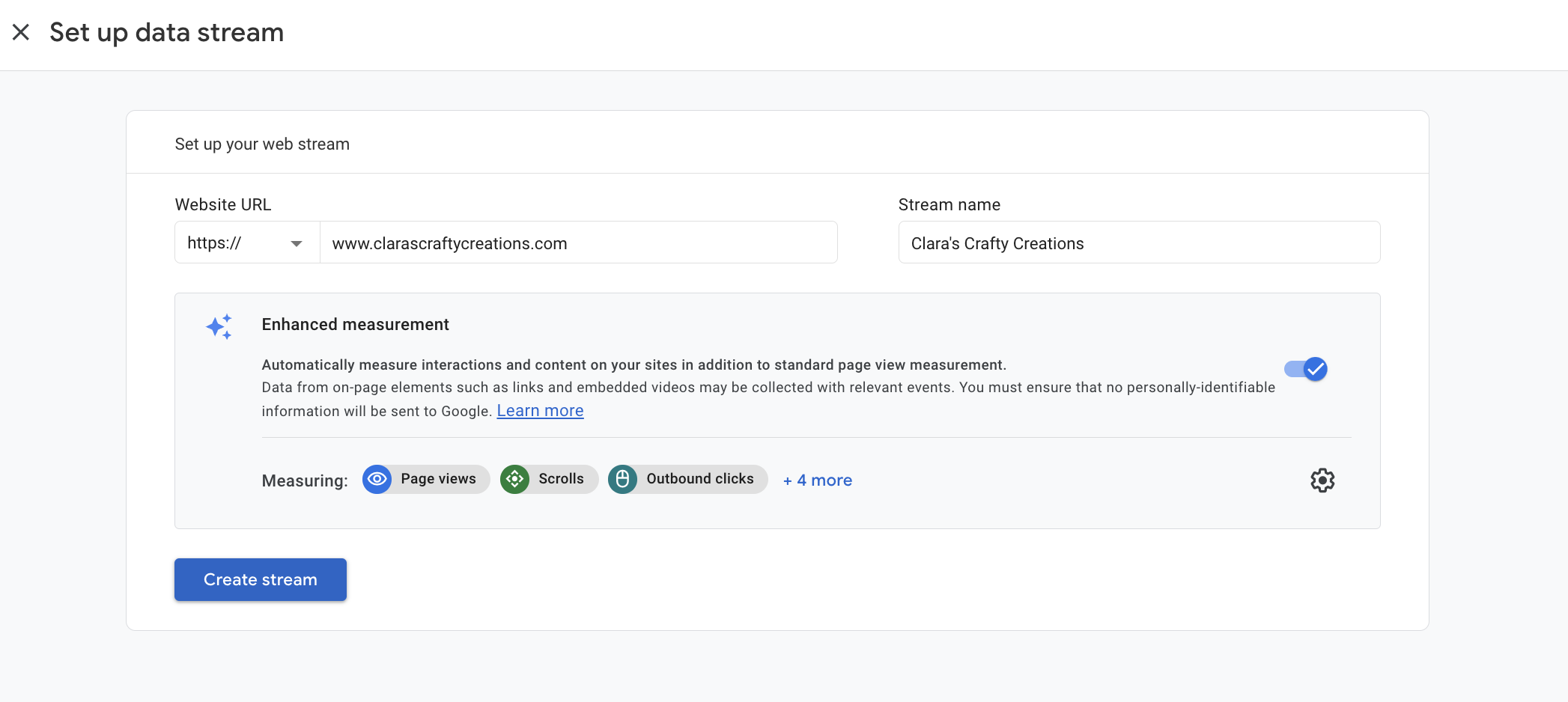 Set up a data stream for your site to add the Google Analytics tag.