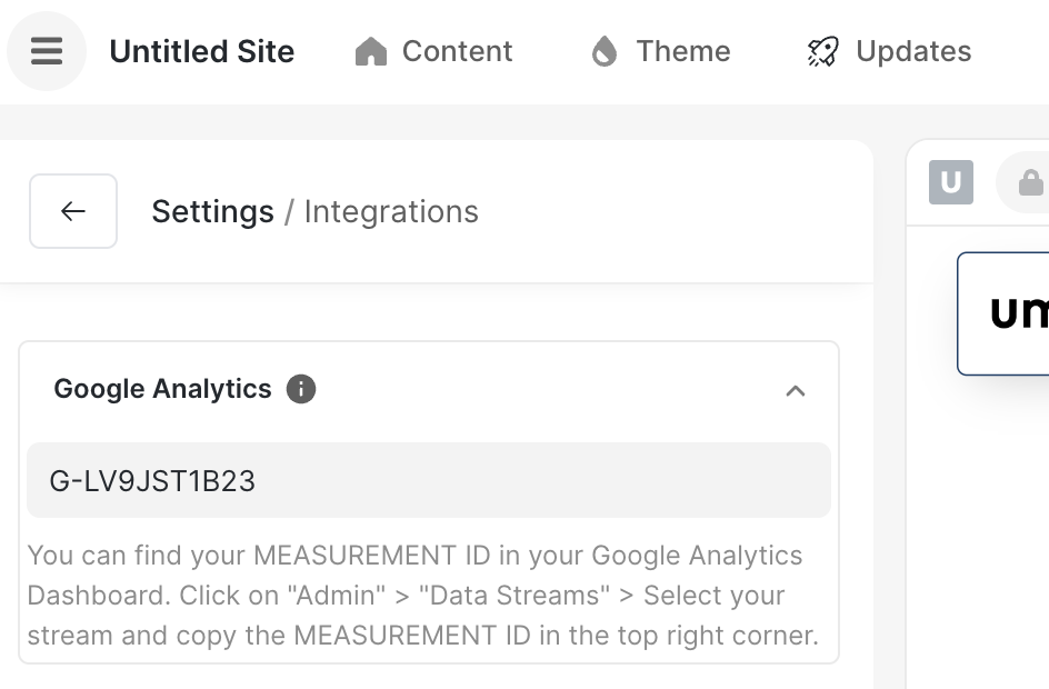 Input the GA Measurement ID from step 1e. (same used in your Umso site)