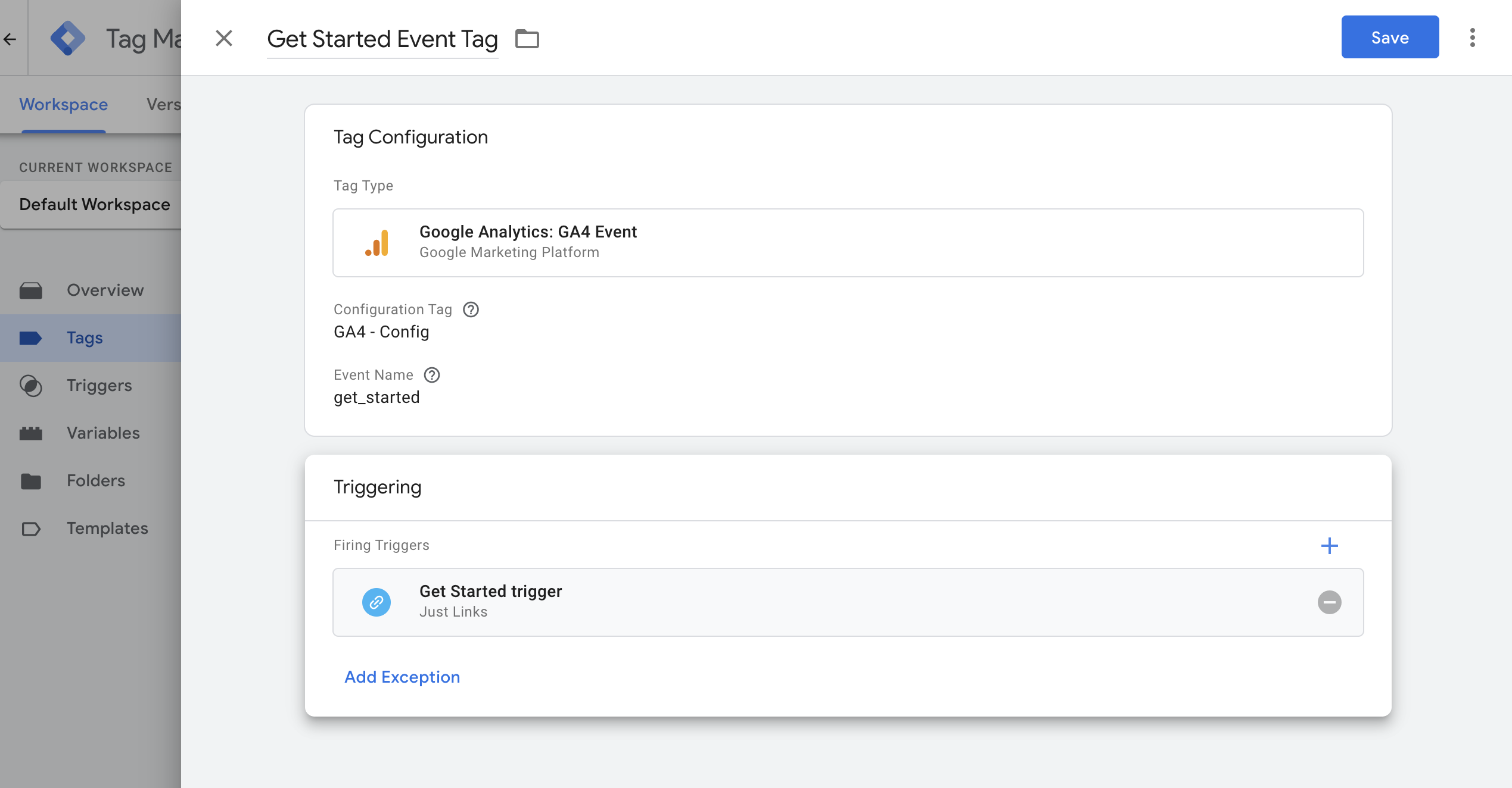 Name it (e.g., "GA4 - Config").