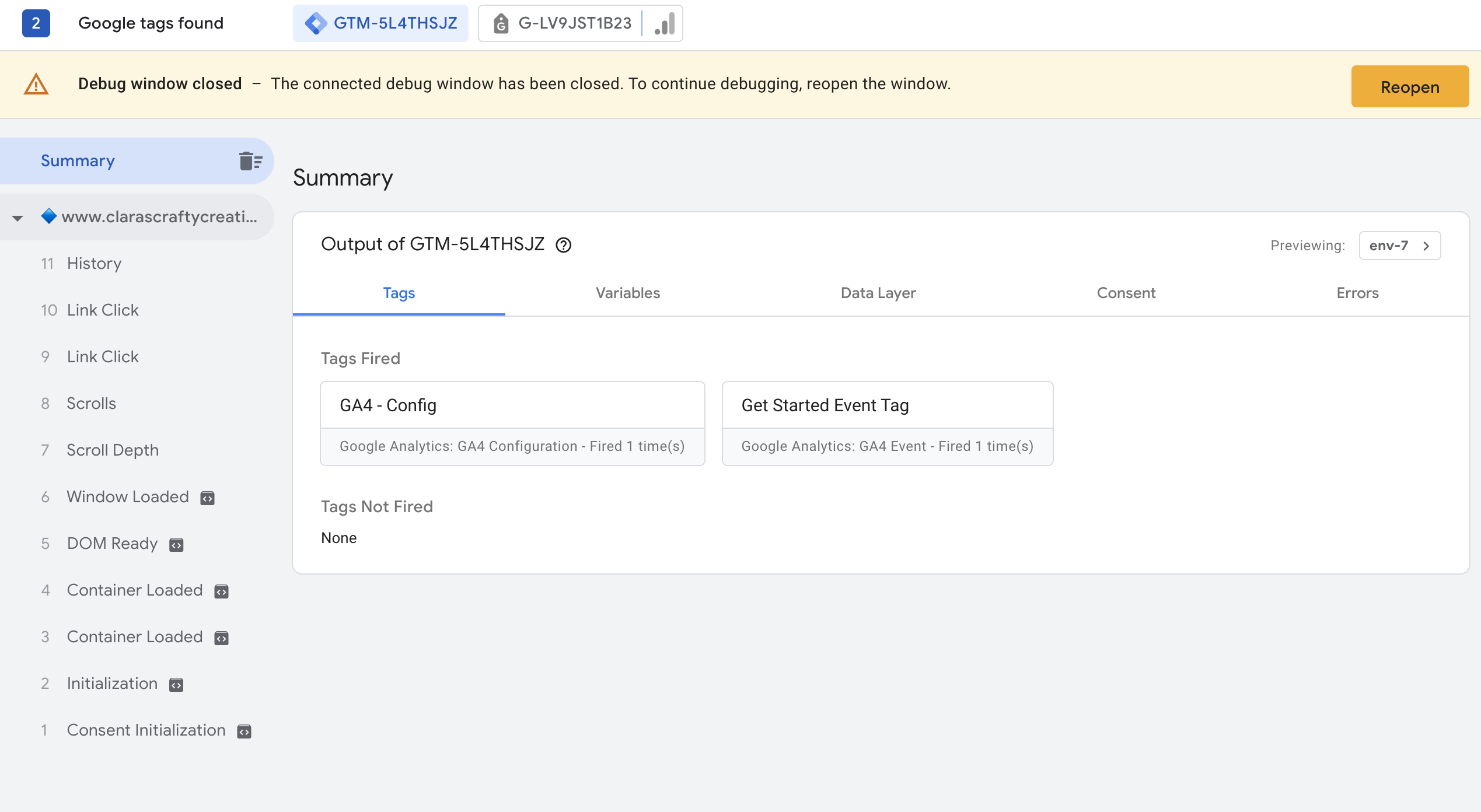 In GTM, click "Preview", input your site URL, and open your site.