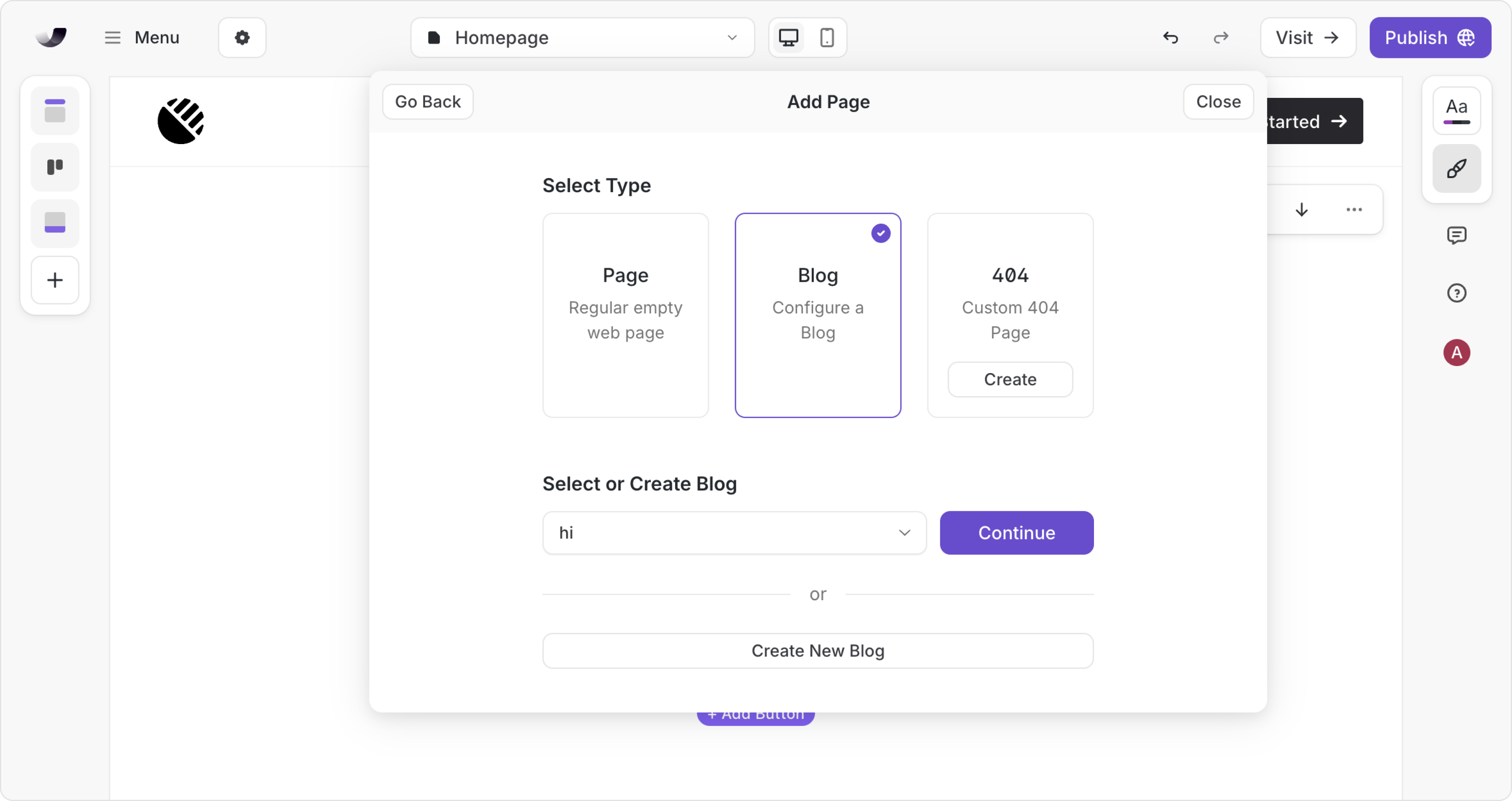 After selecting or creating a blog, it's time to add the blog templates to your site: