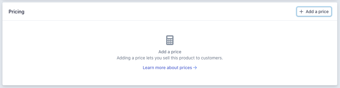 We use the Stripe Price API to load your products and prices. Make sure you have some products and prices in Live mode. If you have created your products a while ago, you might only have SKUs instead of prices. In that case, you can add prices through the UI as shown below: