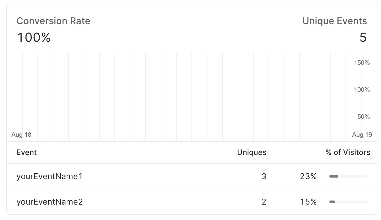 You can see the tracked events in your analytics page under Conversion Rate by visiting Umso Analytics.