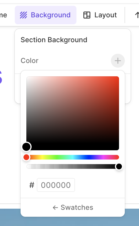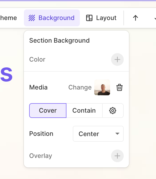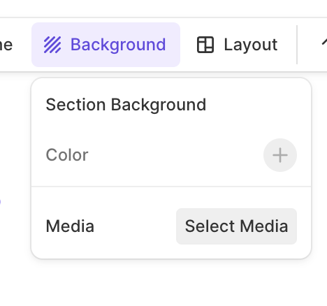 Lastly, media gives you the flexibility to add any media from your library as the background of your section. You can also add an overlay color effect to your image, and play with the transparency.