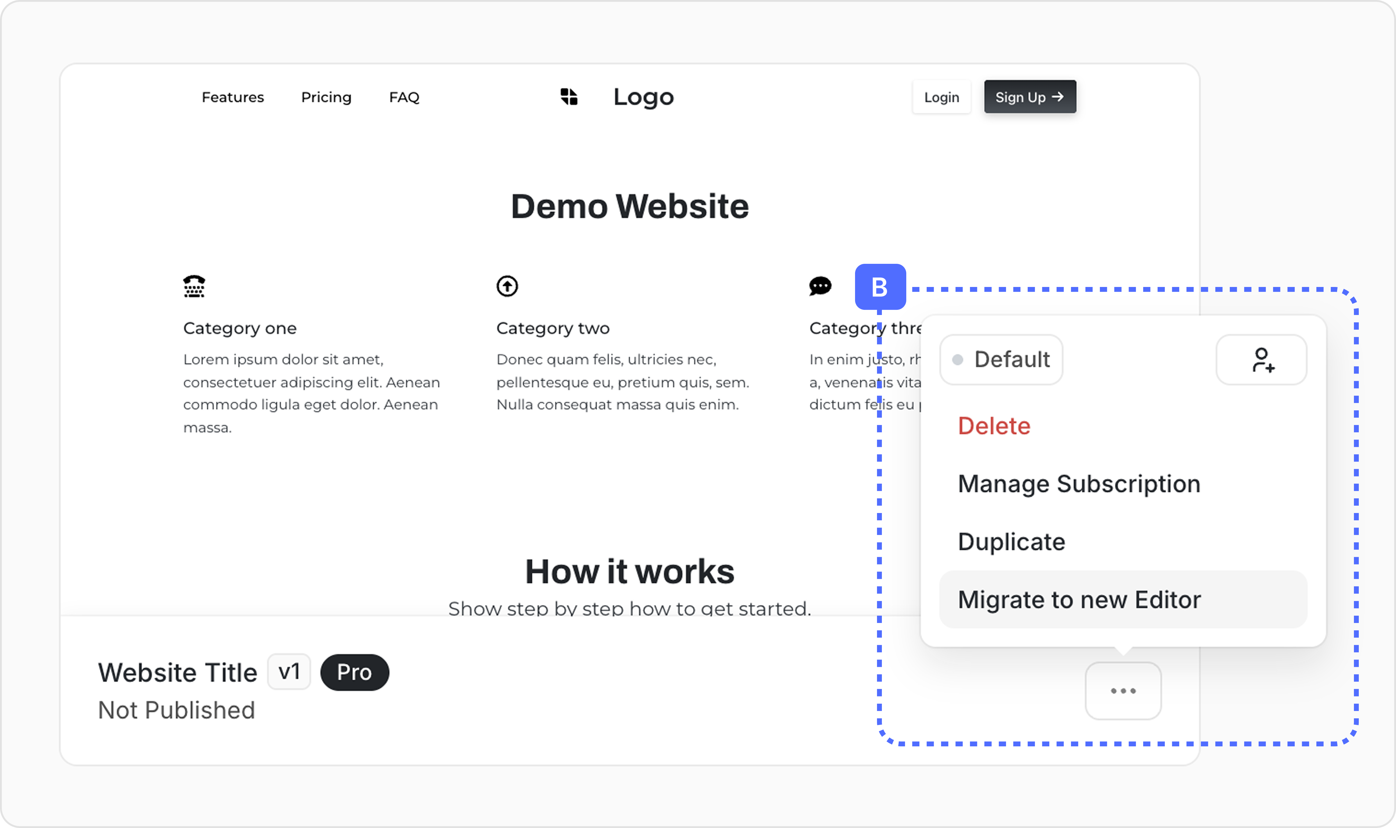 You can upgrade v1 and v2 sites to the v3 editor. To do so, click the 3-dot menu on the site dashboard and then click on "Migrate to new Editor". Then follow the instructions on the page. Have a look at the full guide here.