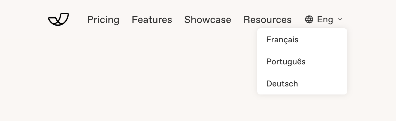 When your site has pages with multiple languages, it's important to give visitors a way to switch between them. That's why we automatically display a language picker in the header of your pages when there is more than one language.