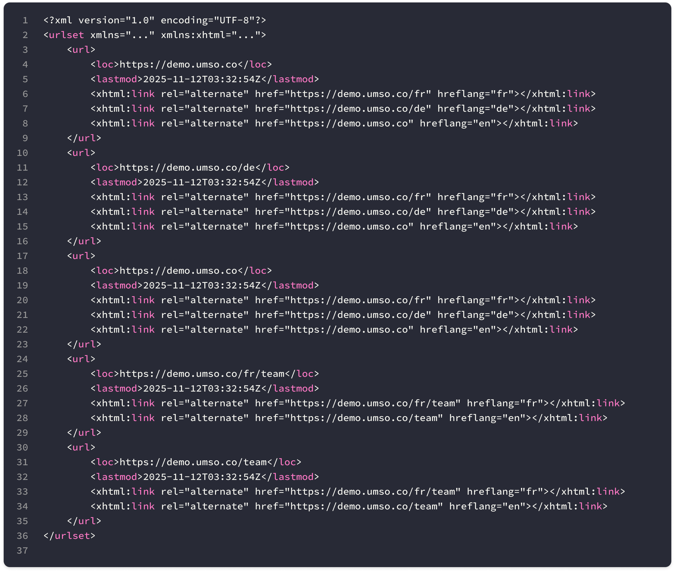 When a page supports multiple languages, we automatically include them in your sitemap so that search engines can easily find them.
