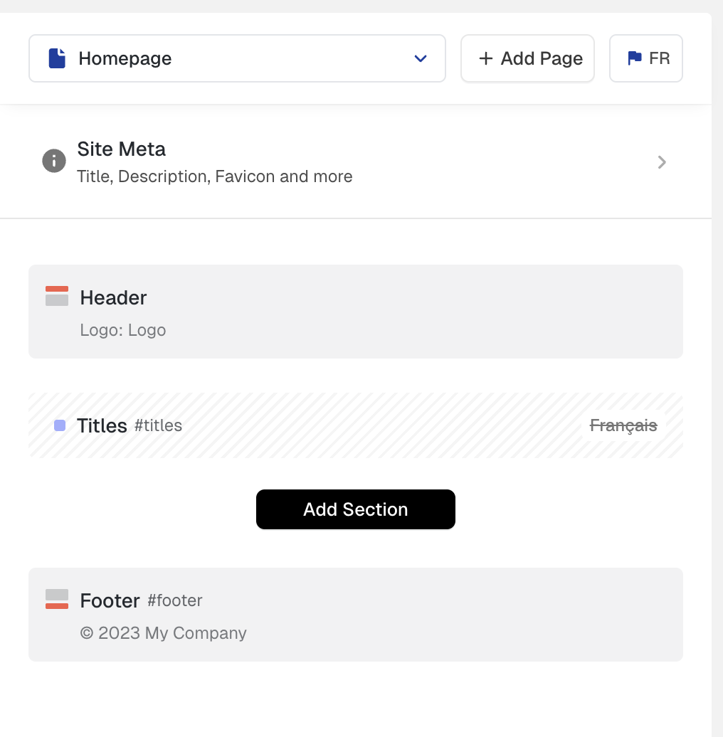 If your site has multiple languages, you can control which sections appear in each language version. This lets you show different content for different languages.