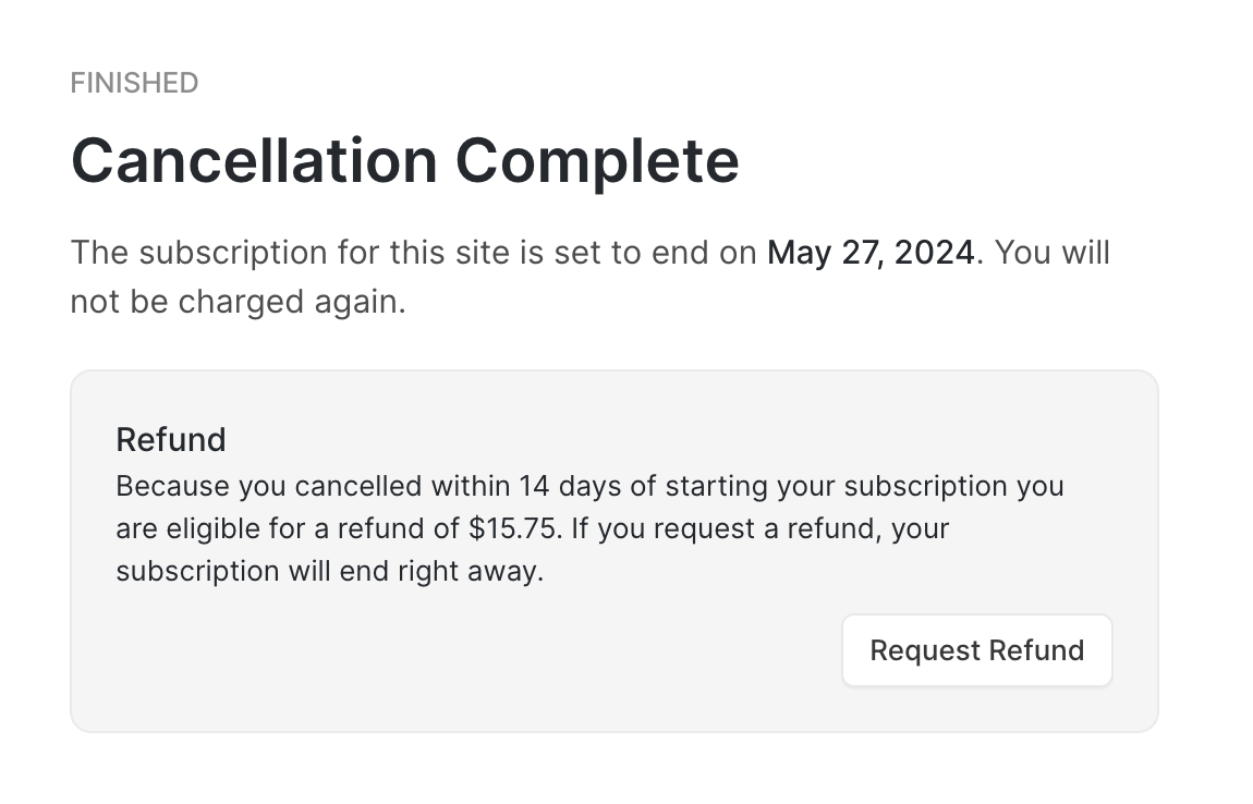 If you do not see the "Refund" box that means your subscription may not eligible for a refund. Please contact our support at [email protected] to manually request a refund if you believe you should be eligible.