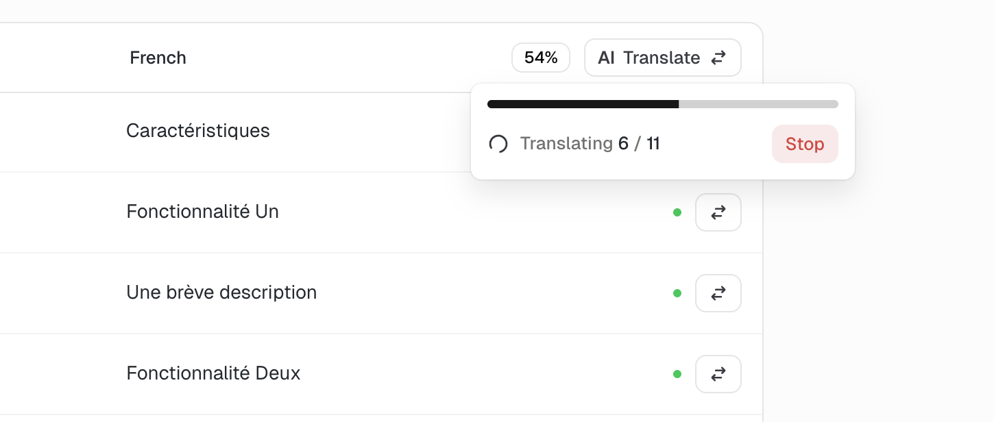 You can also use the "AI Translate" button on top of a section to translate all the content of that section.