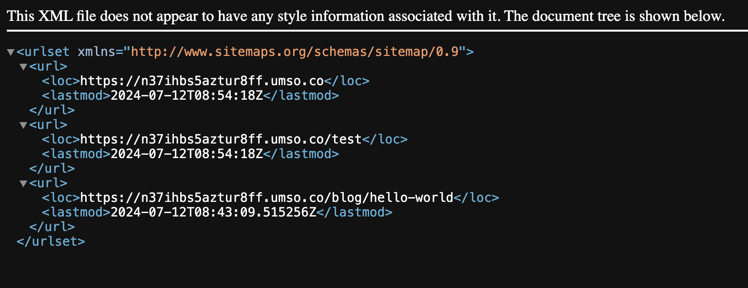 The sitemap tells the search engines directly about your page and helps them how to index the content of your site. We automatically generate and update a sitemap based on your published pages. You don't have to create a sitemap yourself. If you have a blog, we also add your blog posts to your sitemap automatically. You can find your sitemap with the ending "/sitemap.xml" on your website. So entering "example.com/sitemap.xml" shows your sitemap as shown here for example: